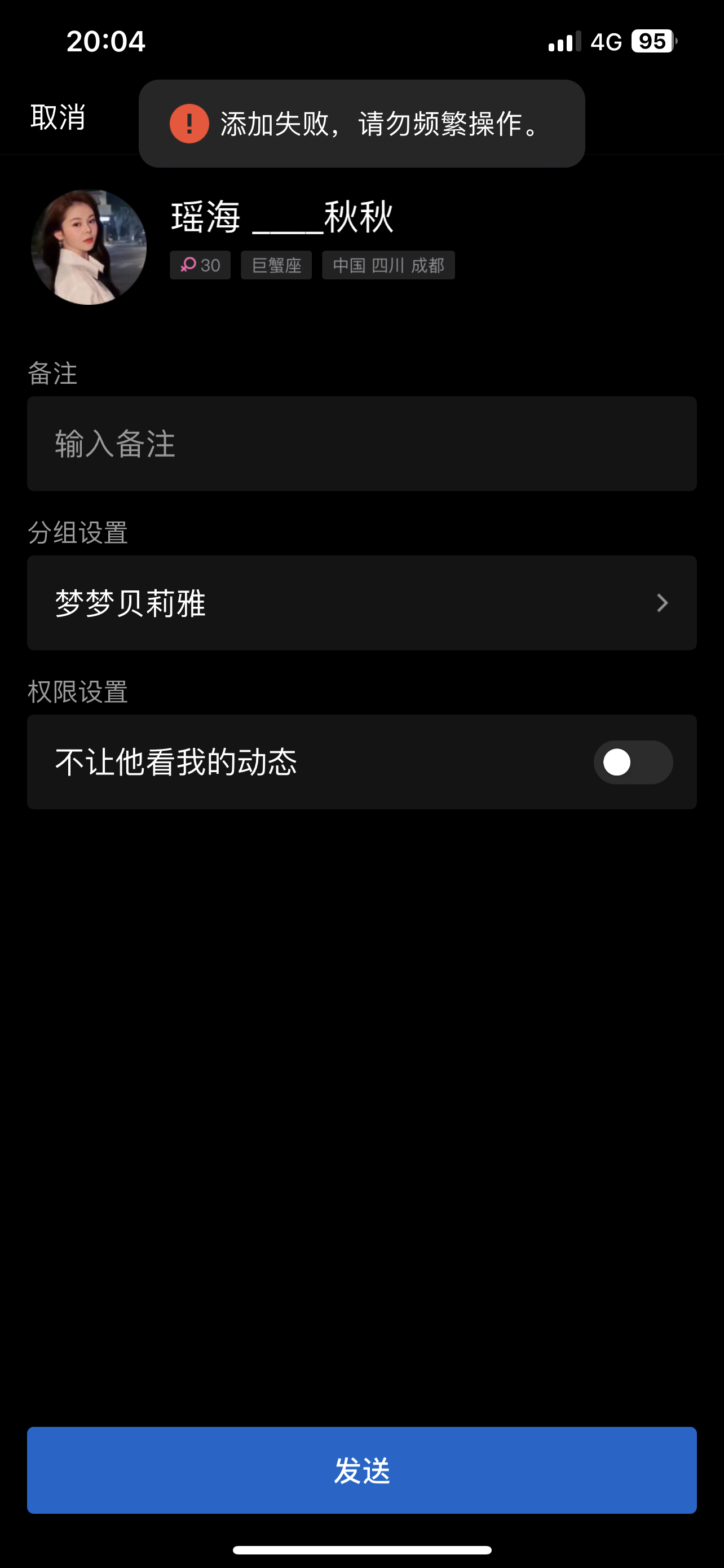 添加不上,换两个QQ都加不上她 lechen_workorder